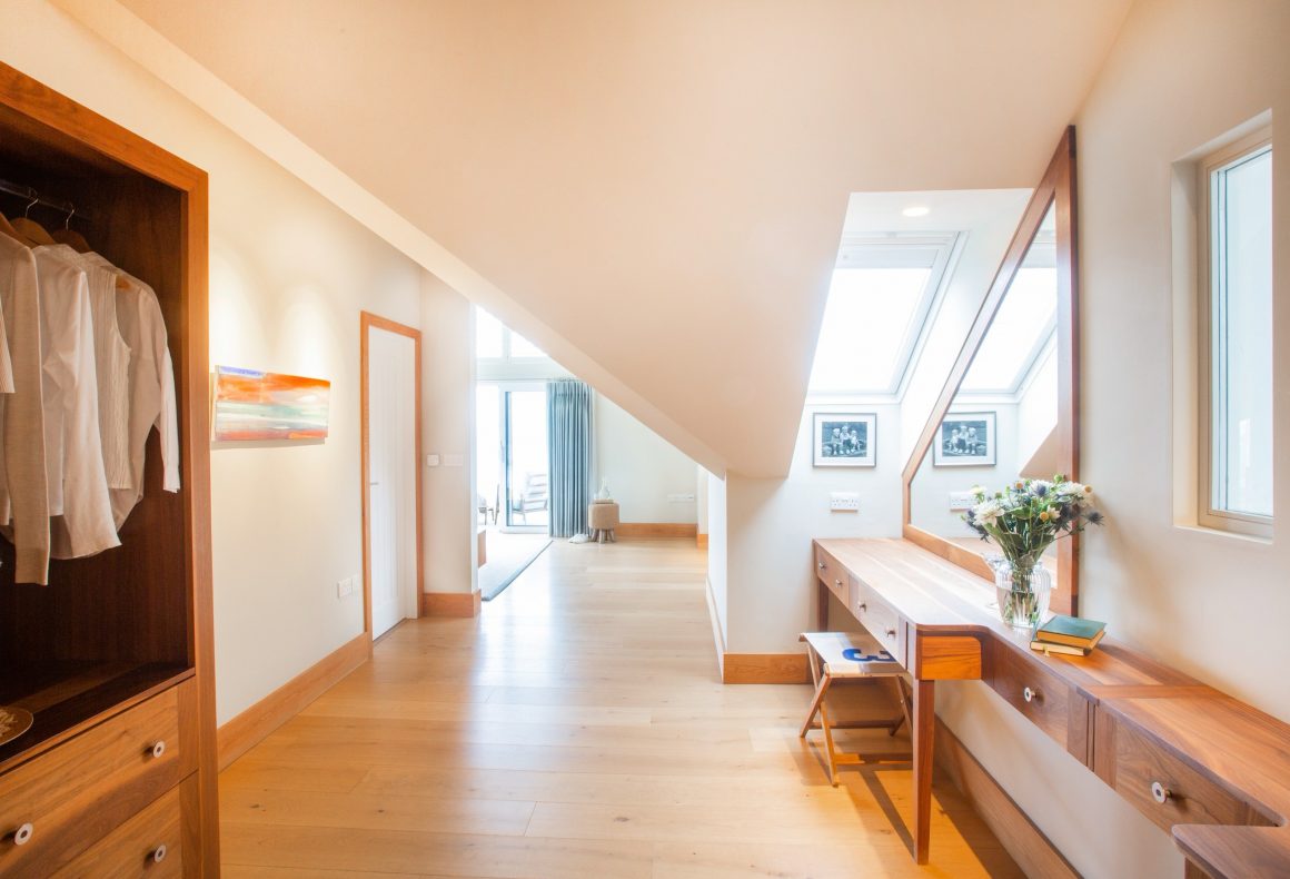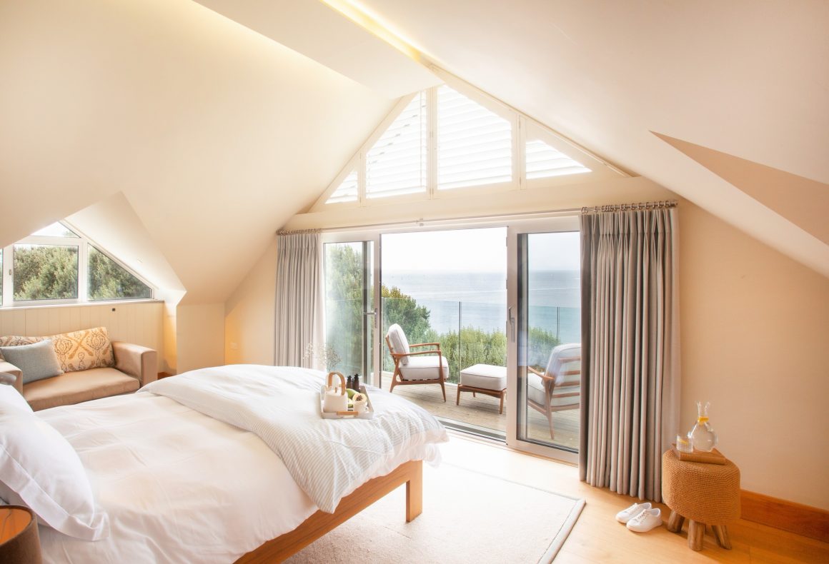 Six beautiful bedrooms are set over three floors of this contemporary house, most with stunning views of the Atlantic.