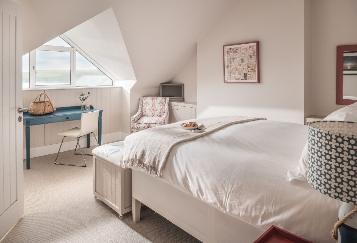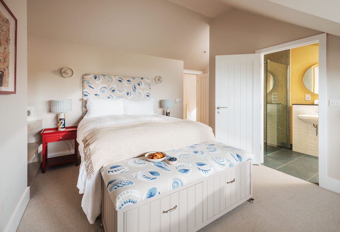 This beautiful single occupancy room has a king-sized bed, built-in wardrobe, chest of drawers and sea views. It shares a bathroom with Driftwood the twin room and has a shower, hand basin and WC.